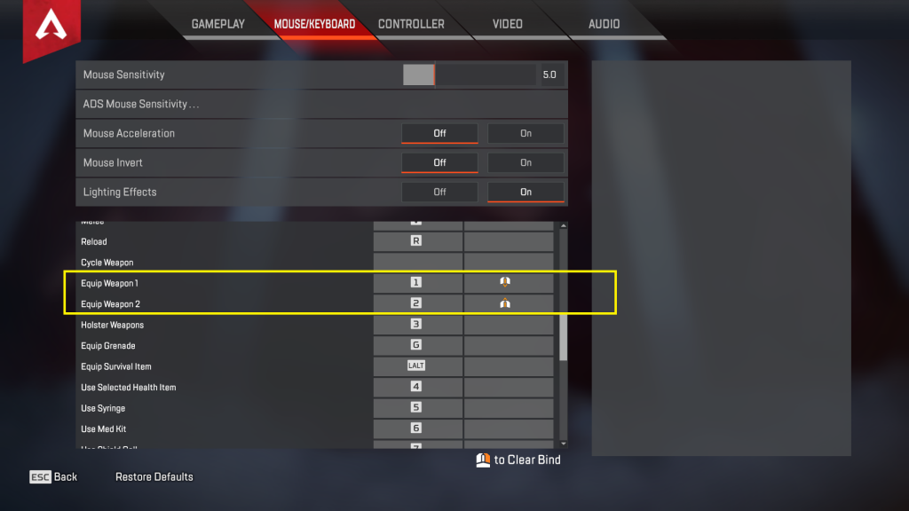 2. Wheel Down –> Primary weapon 1