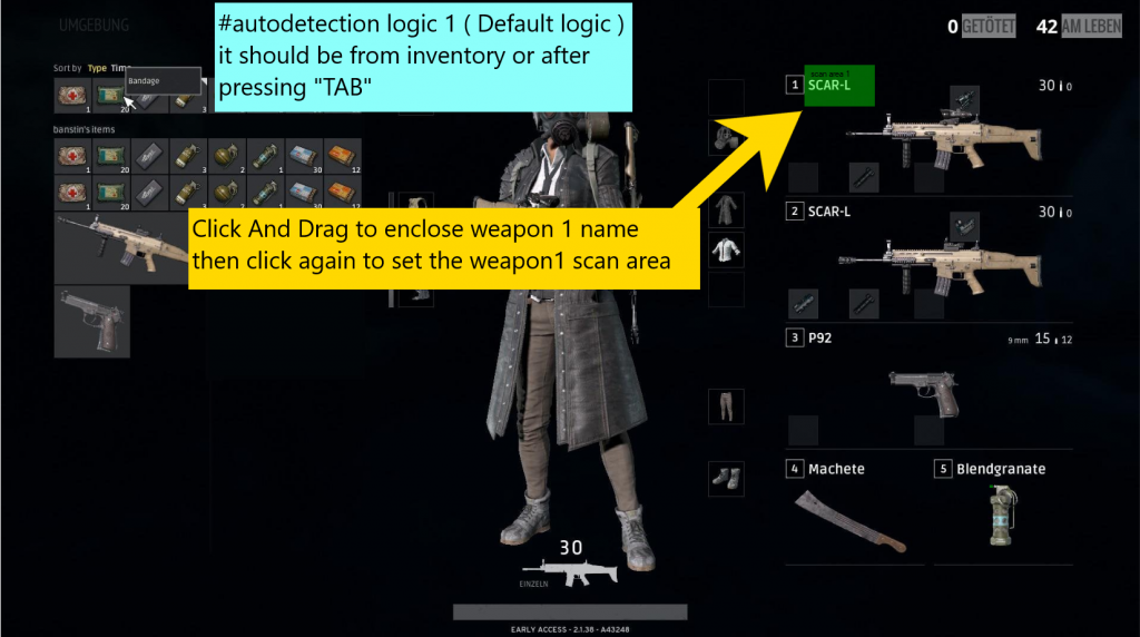 # autodetection logic 1 ==> open the game inventory and set scan area from there ( “tab” is the detection trigger )